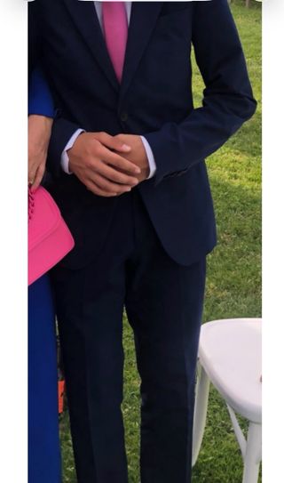 Chaqueta de traje azul marino y pantalón.