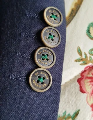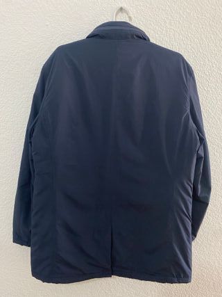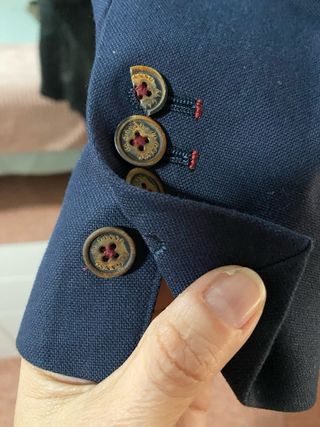 Marca: Scalpers. • Modelo/Línea: Preppy Outfitters. • Tejido: Algodón con textura estilo piqué o micro-waffle (con relieve). Es un tejido más casual, similar al de un polo pero con estructura de chaqueta. • Color: Azul marino (un tono más casual que la Hackett anterior, con ese efecto ligeramente desgastado propio de los tintes en prenda de algodón). • Estado: Muy bueno. El tejido texturizado disimula bien el uso, pero se aprecian ligeras marcas de desgaste en las costuras (ver solapas y hombros) que son normales en este tipo de material "chino". • Detalles: Interior sin forro (desestructurada), solapas de muesca, bolsillos de parch
