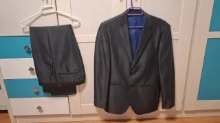 Conjunto de traje de chaqueta y pantalón. - Chaqueta de corte clásico talla 46 - Pantalón de vestir a juego talla 38. Slim fit
