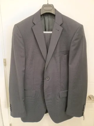 Traje de vestir de lana para hombre. Marca Massimo Dutti. Usado una sola vez. En perfecto estado. Talla 42. - Chaqueta con solapa de muesca. - Cierre de dos botones. - Bolsillos con solapa. - Pantalón de vestir.