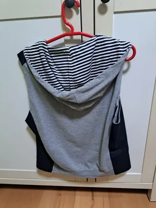 Chaleco de hombre ANTONY MORATO, azul marino y gris, con capucha. Cierre con botones. Los bolsillos son decorativos. Talla 50 / M/L. En muy buen estado.
