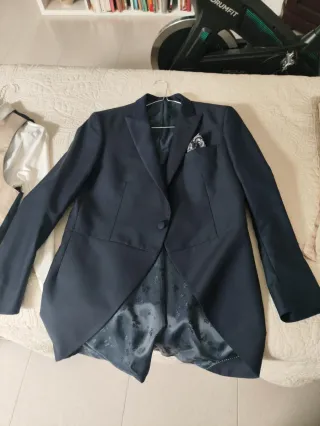 En perfecto estado. Una sola puesta para boda. Luego cambió de talla y ya no se lo pudo poner más. Talla 9-10 años hasta 140cm. América azul marino forrada en su interior y camisa blanca misma talla.