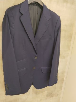 Traje azul marino de Zara. Solo se ha usado una sola vez. Es muy cómodo y elegante. Está en perfecto estado. Talla del pantalón: 38 Talla de la americana: 46