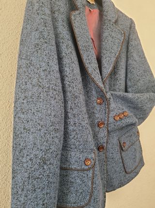 Americana Azul marino es nueva talla M pero sirve para una talla S, es muy estilosa y bonita con las coderas y el mismo detalle de en los hombros, botones con dibujos preciosos