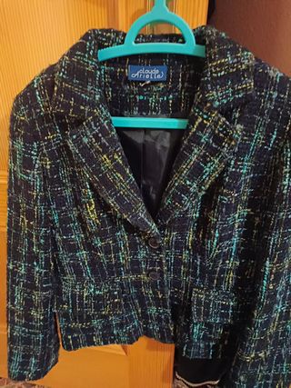 Americana color azul celeste de mujer. Talla 40. 100% Poliéster Opcional: pantalón largo azul celeste, talla 42, 100% poliéster. Solo la americana, 25€ Solo pantalón, 20€ Conjunto chaqueta y pantalón... 40€