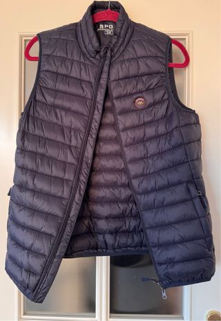 Americana invierno calentita ,con bolsillos,azul marino jaspeada ,poco uso ,medida aproximada para 1,60 por la cadera.Comprada en comercio local..