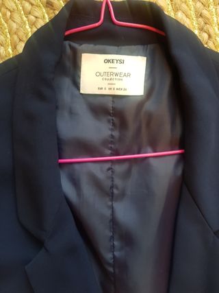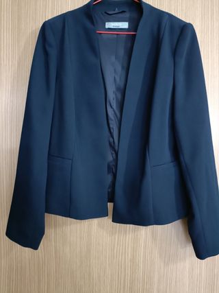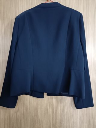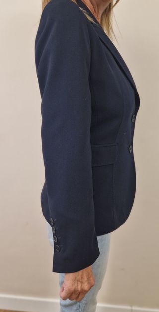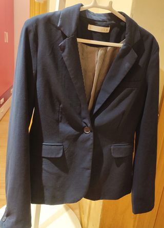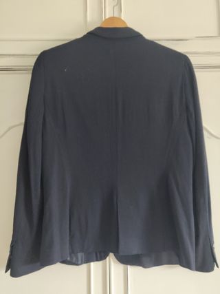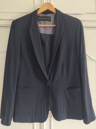 Americana en tono azul marino, de Zara, talla 36, entallada.