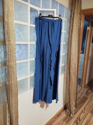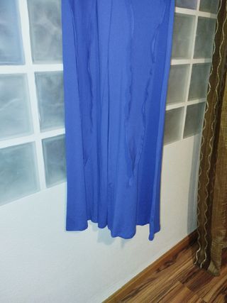 Color azul electrico, ideal para ceremonia con una americana. Piernas "anchas", llevado para una boda solamente.