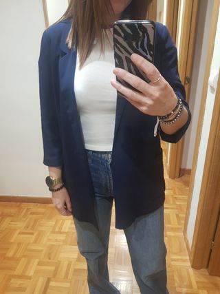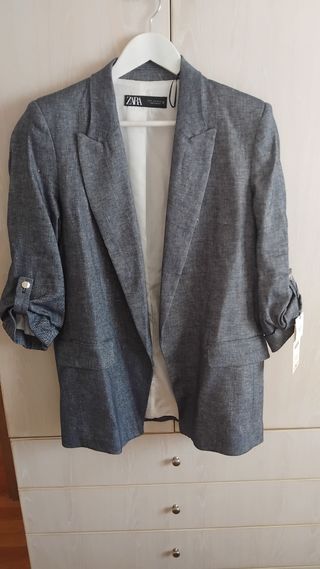Americana de la marca Zara, color azul , sin estrenar. - Diseño con solapas. - Mangas enrolladas con detalle de botón - Nueva con etiquetas