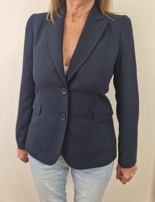 Americana azul marino. Con forro, muy buena calidad. Como nueva. Corresponde a talla 36 aproximadamente. Pecho 80cm, cintura 76cm, largo 64
