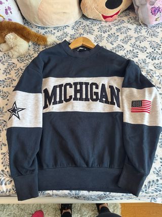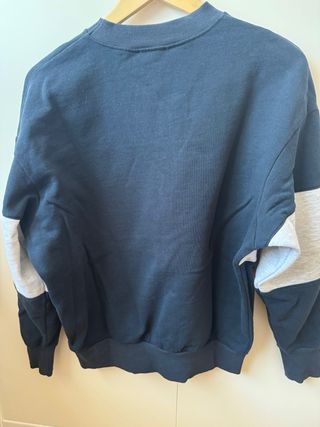 Sudadera de la marca Subdued con un diseño moderno y llamativo. - Detalle de franja blanca central con texto. - Estrellas y bandera americana en las mangas. - Puños y cintura elásticos.