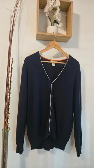 DOCKERS CARDIGAN AZUL MARINO - Talla M 100% Algodón | Ribete Blanco 🏷️ DOCKERS BY LEVI'S - marca americana clásica, calidad duradera ✨ DETALLES Color azul marino con ribetes blancos Cuello en V, 5 botones frontales Detalle interior naranja en cuello Punto fino liso, suave y transpirable Fit regular clásico 📏 MEDIDAS APROX Pecho: 96-102cm | Altura: 1.70-1.85m Complexión media/atlética ✅ ESTADO: BUENO Uso normal visible, sin manchas ni roturas, botones intactos 💡 COMBINA CON Camisa + chinos (smart casual) o camiseta + jeans (look college) Estilo preppy atemporal perfecto para entretiempo #Dockers #Cardigan #TallaM #AzulMarino