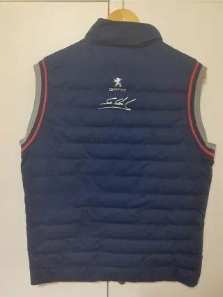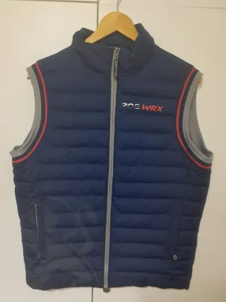 Chaleco acolchado de la marca Ron Brugal.75c.de largo y 60c. de sisa. - Color azul. - Cierre de cremallera frontal. - Bolsillos laterales.