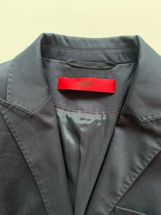 Americana de la marca Hackett en talla 46R. Un clásico para cualquier ocasión. - Color azul marino. - Forro interior de color rojo vibrante. - Cierre de un botón. - Bolsillos frontales con solapa. - Puños con detalle de botones.