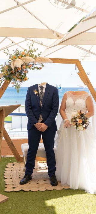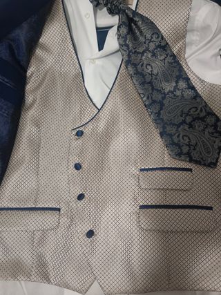 Chaleco de novio beige y azul