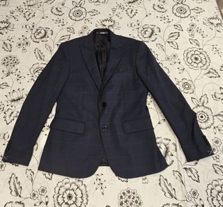Traje de chaqueta y pantalón de Calvin Klein. - Corte slim fit. - Tejido de lana. - Color azul con detalles grises. - Valor del traje 349€ - Solo un uso