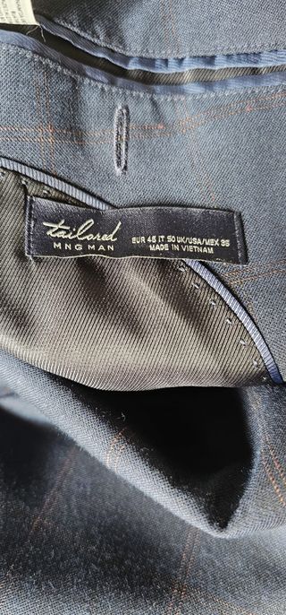 Un traje azul marino,color oscuro y bonito,marca Zara,chaqueta talla L pero es más como M ,pantalón de largo 100 cm, talla S,se puede comprar junto o ceparado ,precio por separado 30 euros chaqueta y 20 euros pantalón
