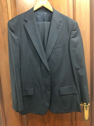 Traje de tres piezas completo. Azul marino. Puesto en dos ocasiones. En perfectas condiciones. Medidas: - Cintura pantalón - 45cm - Largo pantalón - 93cm - Largo mangas - 60cm