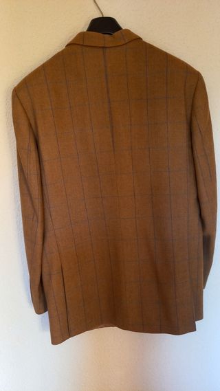 Chaqueta americana de hombre en tonos marrones con cuadro azul y dos aperturas atrás