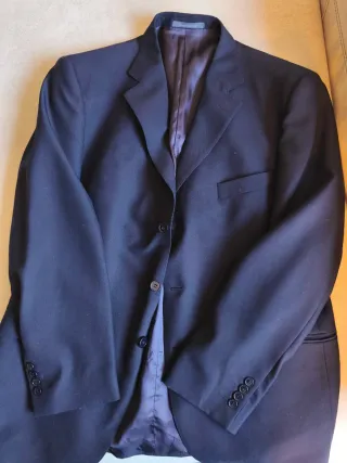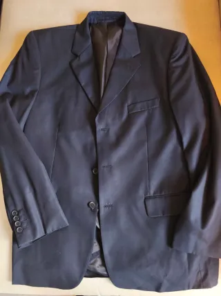 Elegante traje de chaqueta para caballero. - Chaqueta de corte clásico. - Pantalón a juego. - Diseño moderno y versátil. Chaqueta talla 54 y pantalón talla 48 Usado 2 veces y limpiado en tintorería.