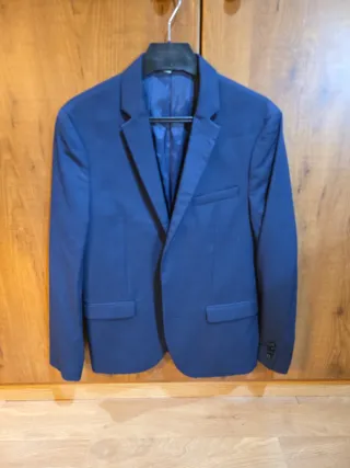 Traje chaqueta azul marino para joven. Chaqueta talla 40 Pantalon talla 38 slim fit - Diseño moderno y versátil. - Usado solo para graduación de bachillerato - Tejido de calidad, se ve impecable. Se vende americana con el pantalón