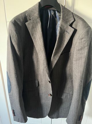 Americana de vestir de la marca El Ganso. Muy poco uso - Color gris con detalles en azul marino. - Puños con botones. - Parches en los codos.