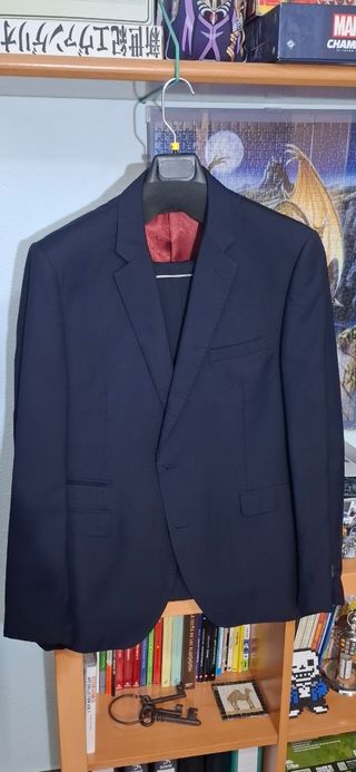 Traje de chaqueta completo Dustin azul marino. Solo una puesta. Estado impecable.