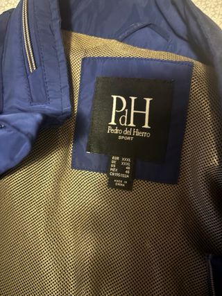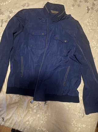 Chaqueta de la marca Pedro del Hierro en talla XL. Un diseño moderno y versátil. - Cierre de cremallera frontal. - Dos bolsillos con solapa en el pecho. - Bolsillos laterales con cremallera. - Cuello alto con detalles. - Puños y bajo elásticos.