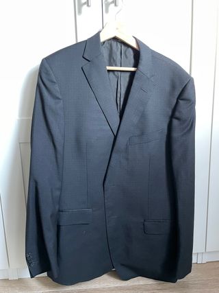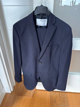 Conjunto de traje de dos piezas en color azul marino. - Chaqueta con dos botones. - Pantalones de vestir. - Precio original: 120€