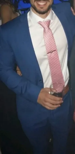 Precioso traje de Zara,color azul marino oscuro muy elegante. Chaqueta talla 46 ( es equivalente a una S-M ) y pantalon talla 38. Puesto solo 2 veces y llevado a tintoreria. Modelo Slim tailoring. Cuenta con 2 bolsillos interiores. Comprado el año pasado. Se me ha quedado pequeño