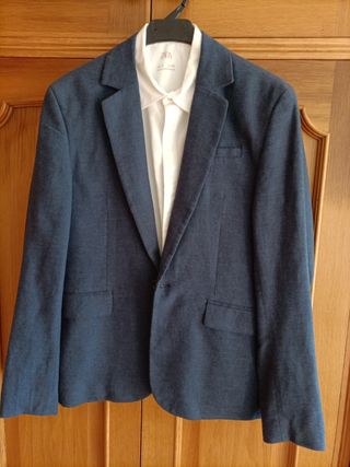 Elegante americana para hombre de la marca Zara, en color azul. Talla 50