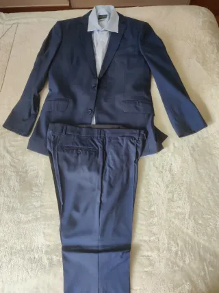 - Traje de hombre con un uso, para una graduación. - Color: azul marino. - Marca: Zara. - Talla: americana 46 y pantalón 38.