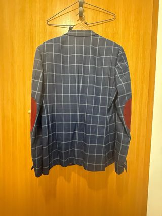 Americana de paño azul marino muy elegante, perfecta para ir arreglado sport con vaqueros o chinos. En perfecto estado y muy buena calidad, xq está muy bien armada y forrada. La persona que la lleva mide 1,82 y pesa 75 kg.