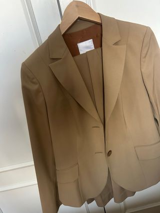 Elegante traje de chaqueta y pantalón en color camel. - Diseño clásico y atemporal. - Tejido de calidad.
