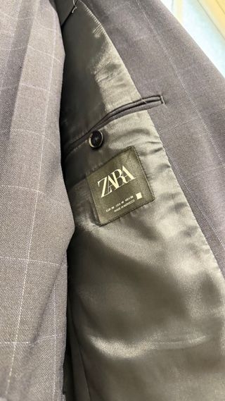 Americana de hombre ZARA (talla M), nueva sin etiquetas. Diseño elegante con estampado de cuadros gris tipo príncipe de Gales, corte clásico y cierre cruzado con dos botones frontales. Tejido de calidad con mezcla de poliéster (67%) y viscosa (31%), lo que aporta suavidad, caída y confort. Interior totalmente forrado en negro. Perfecta para oficina, eventos o looks formales. Sin señales de uso, impecable. Marca: ZARA Man Estado: Nuevo sin etiquetas, no se ha usado nunca por talla incorrecta Talla: M (EUR M / USA M / MEX 28) Color y patrón: Gris, estampado cuadros príncipe de Gales Cierre: Botonadura cruzada (2 botones) Composición: