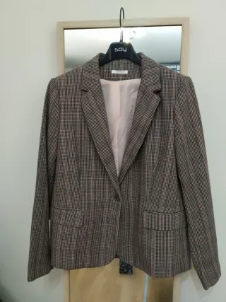 Americana de cuadros de Zara. - Diseño de cuadros. - Cuello solapa. - Cierre de un botón. - largo 3/4 - de lana