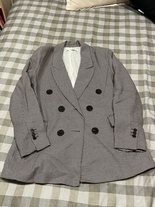 Americana oversize de Zara con estampado de cuadros. Un clásico renovado para cualquier ocasión. - Diseño de doble botonadura. - Bolsillos frontales con solapa. - Cuello de solapa clásico. Talla XS (oversize) En perfecto estado