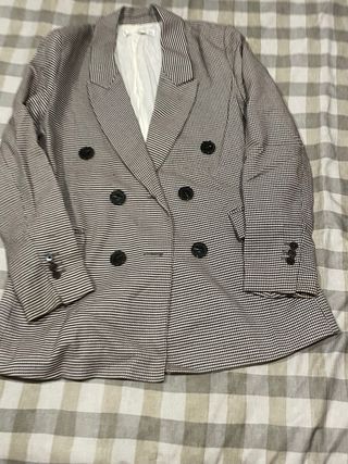 Chaqueta americana tipo blazer de Stradivarius con estampado de cuadros blanco y negro talla S (de normal uso una talla M, 38) Tiene forro interior y hombreras, por lo que es más formal. Cuenta con bolsillos útiles. Si necesitas más fotos no dudes en pedirlas.