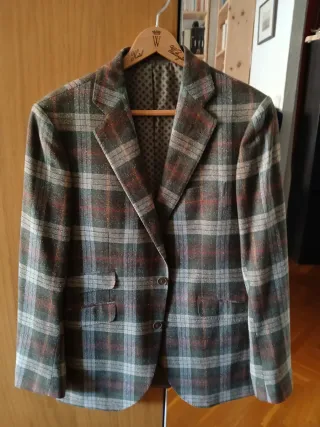 Americana de cuadros para hombre con un diseño clásico y versátil. Esta casi nueva, puesta sólo 2 veces, 5% poliester y 35% algodón. Marca Lander Urquijo. Tengo otra parecida, si se compran juntas hago precio.