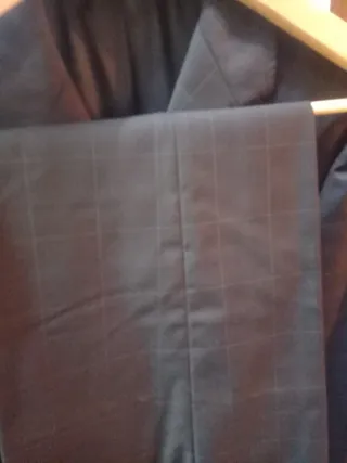 Traje de vestir con un elegante diseño a cuadros. - Color azul marino. - Patrón de cuadros. - Ideal para ocasiones formales. En perfecto estado. Pantalón 38, chaqueta 46