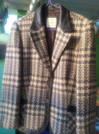 americana mujer massimo dutti de cuadros. ideal con camisa blanca. coderas marrones. súper comoda