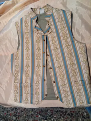 Chaleco para niño con un bonito estampado floral. - chaleco fallero niño en tonos marrones y azules. - Bolsillos delanteros. - Forro interior. - NUEVO A ESTRENAR - No tiene etiquetas porque está hecho a mano por mi madre Precio sólo del chaleco pero como sale en las fotos, tengo varios pantalones a juego. - medidas en las fotos
