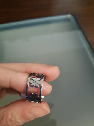Anillo de acero flores, no se pone feo ni da alergias. Talla 6 americana, 12 española, 52 francesa. Nuevo a estrenar con etiqueta.