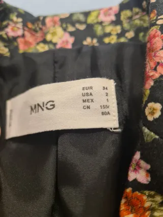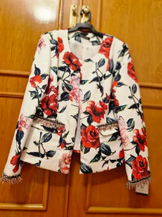 Chaqueta americana con estampado floral. - Diseño llamativo con flores en varios tonos. - Corte moderno y elegante.