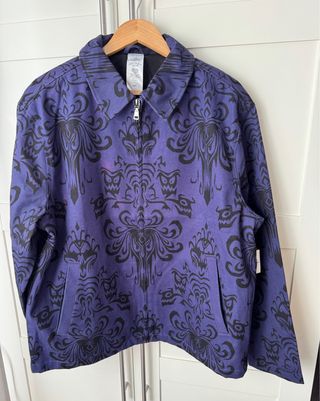 Chaqueta para hombre con estampado icónico de la Mansión Encantada “Haunted Mansion” de Disney Orlando (Florida, USA). - Diseño llamativo en morado y negro. - Cierre de cremallera frontal. - Bolsillos laterales. - Cuello clásico. - Talla L americana. - Algodón 100% (ver etiqueta en fotos). Entrego en Madrid (zona Parque Berlín) y también puedo hacer envío por Wallapop.