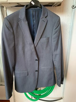 Americana de vestir de la marca Zara en color gris y talla XL. Un clásico para cualquier ocasión. - Diseño con raya diplomática. - Cierre de dos botones. - Bolsillos de solapa.