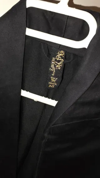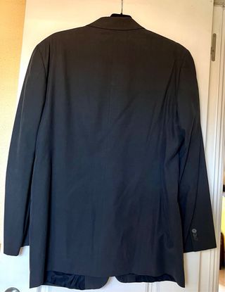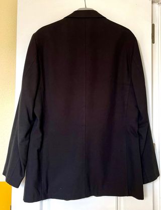 Americana negra de doble botonadura, talla 54, con botones dorados estilo clásico. Marca Justo Arroyo, prenda elegante y muy cuidada. Perfecta para eventos, trabajo o vestir con un toque distinguido. Tejido con buena caída y acabado impecable. En muy buen estado, lista para usar.