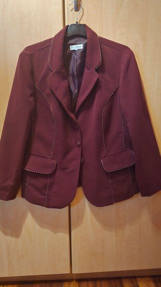 Elegante americana de la marca Lola Valdueza. - Color burdeos. - Diseño con pespuntes decorativos. - Cierre de dos botones. - Dos bolsillos frontales.