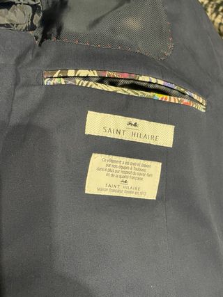 Americana de vestir de la marca Sant Hilaire. - Color azul marino. - Diseño clásico con un botón. - Bolsillo de pecho con pañuelo estampado. - Solapa con detalle de hilo rojo.