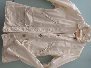 Americana elegante de la marca Pieces, en color blanco y talla S-M. Es una prenda nueva, ideal para añadir un toque sofisticado a cualquier atuendo. - Diseño clásico de blazer. - Dos bolsillos frontales. Talla S (ver en fotos los cm) Nueva a estrenar aun conserva los cosidos originales. Precio en tienda 49,99€